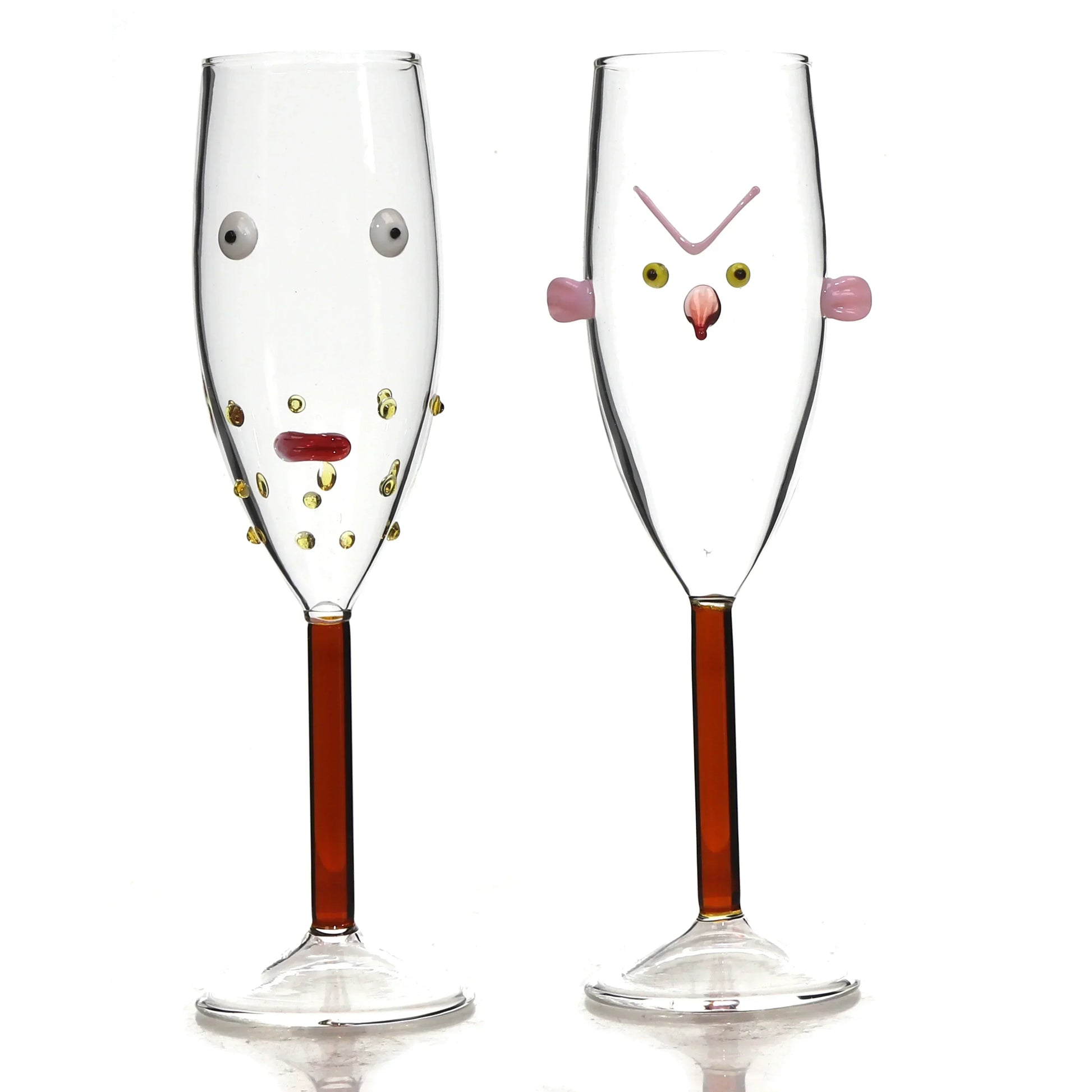 2 Pcs Pack Novelty Champagne Glass Cup Featuring a Novel & Adorable Stylized Faces